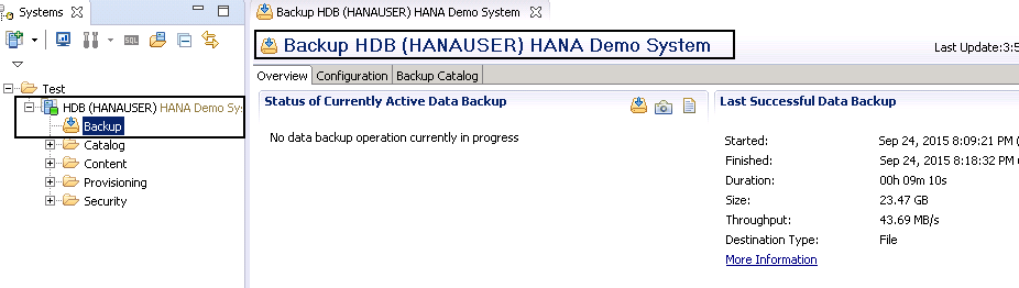 To see the backup configuration, you have to double click on Backup folder. HANA Studio opens the backup configuration for HANA system −