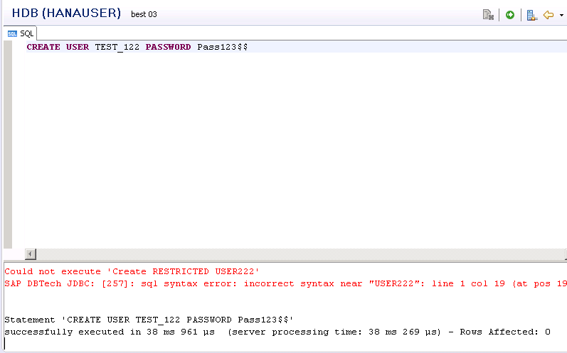 CREATE USER TEST_122 PASSWORD Pass123$$