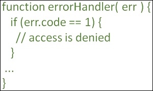 Here’s how you can make use of the PositionError object. The errorHandler method is a callback method −