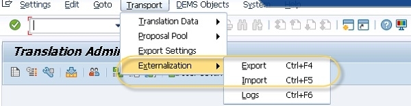 Navigate to Transport -> Externalization -> Import and this will open the Import Translation Objects screen.