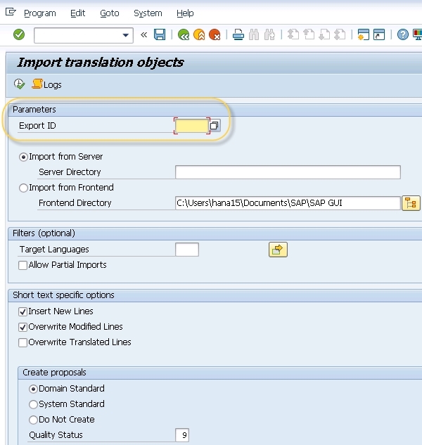 With the use of Transaction LXE_Master, you can import the translations of short texts and PDF forms that have previously been exported for offline translation. During import you can create proposals in the proposal pool.