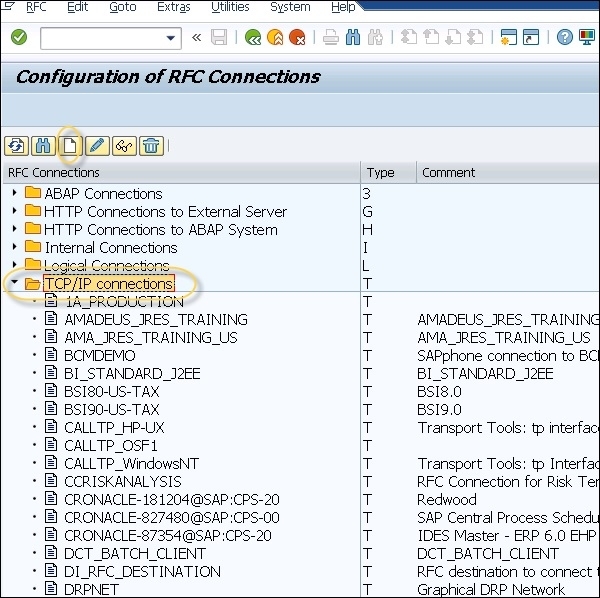 Navigate to Transaction SM59 -> Expand TCP/IP connections directory and click on Create (F8).