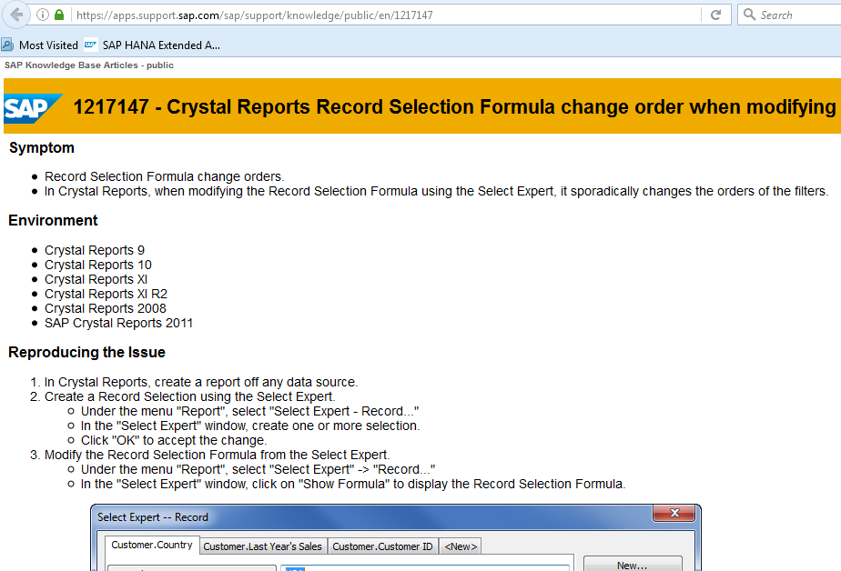 SAP Knowledge Base 1217147