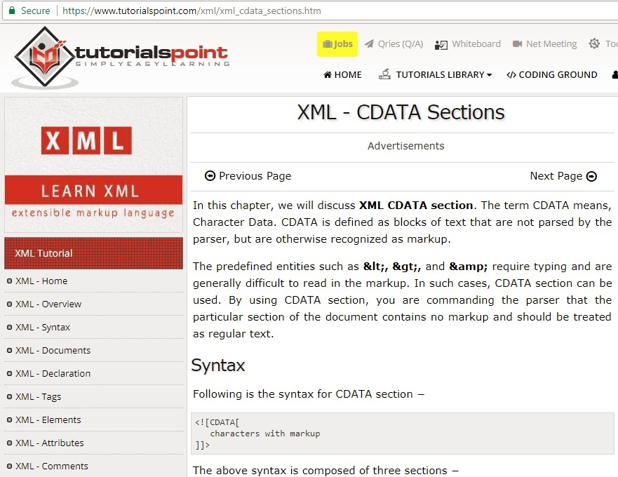 https://www.tutorialspoint.com/xml/xml_cdata_sections.htm