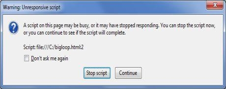 JavaScript will hang your browser in situation where CPU utilization is high. Let us take a simple example where Javascript goes through a big loop: