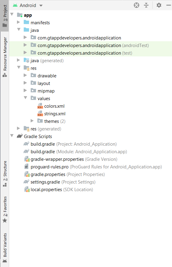 Once you have created your android studio project. On the left pane you will get to see the complete file structure for your android studio project. Now we will take a look at each of them one by one.
