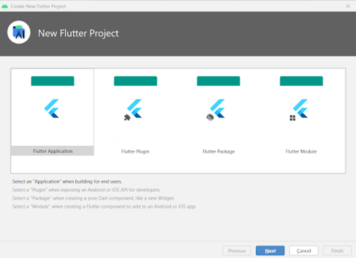Inside this screen you have to select Flutter Application and then click on Next you will get to see the below screen.