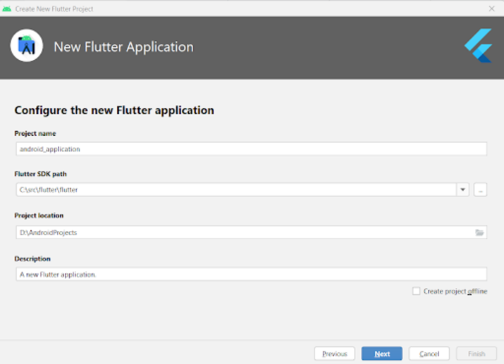 Step 1 ? Creating a new flutter project in Android Studio.