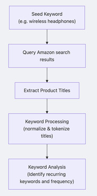 A typical Amazon keyword research system follows this workflow -