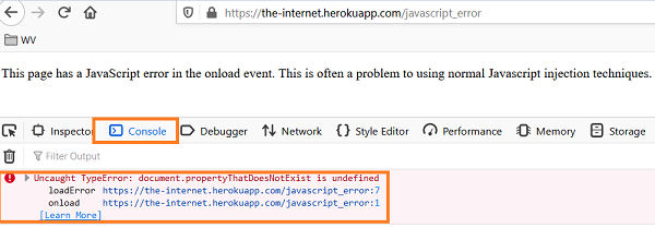 String u = "https://the−internet.herokuapp.com/javascript_error";