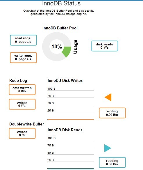 This gives a general overview of the disc activity produced by the InnoDB storage engine as well as the InnoDB Buffer Pool. Three groupings of data points are created ?