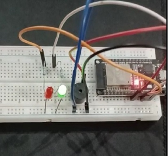 Step 3 ? The buzzer's plus point is to be connected to the D26 pin of ESP32. Connect the buzzer's negative point to the GND pin of ESP32.
