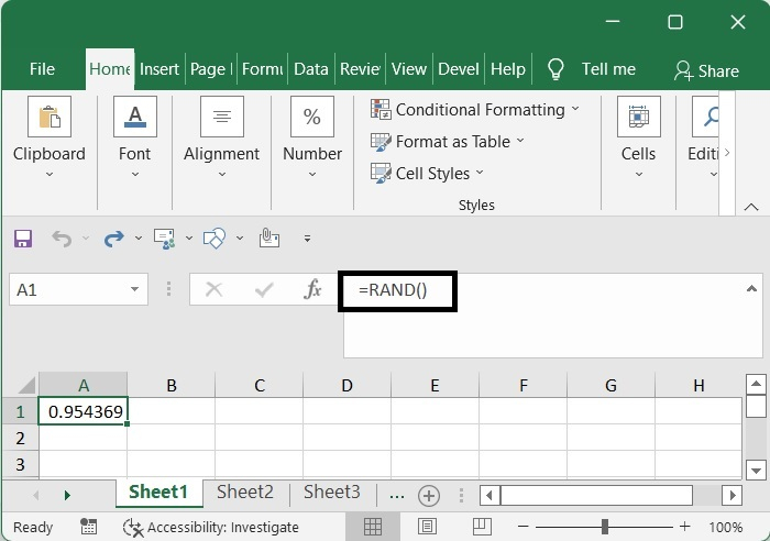 You will get a random number ranging from 0 to 1 if you use this formula.