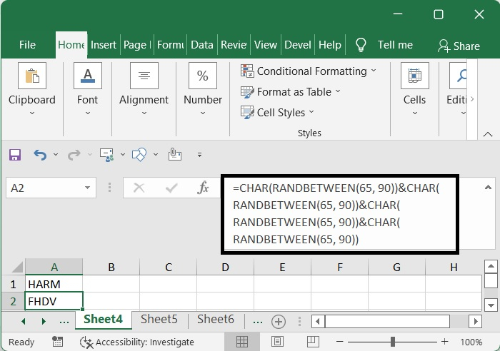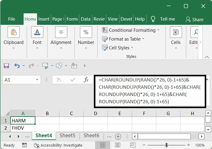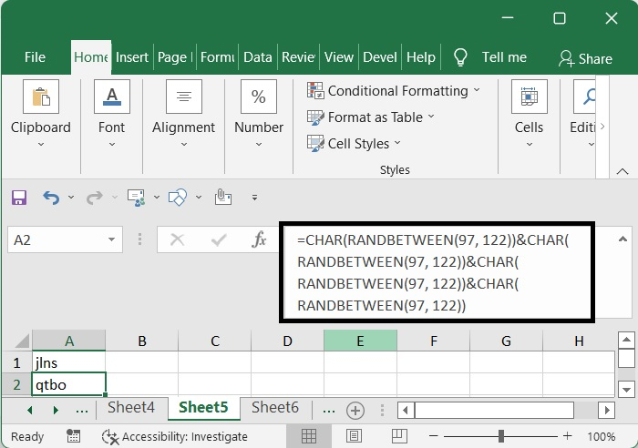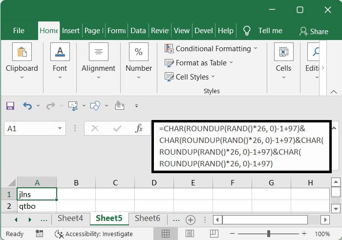 It is possible to return random characters by using the CHAR, RAND, and ROUNDUP functions; let me now demonstrate how to do so.