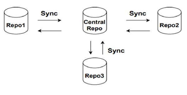 Version control systems are of two types - centralized and distributed. In a centralized system there will be one single repository that is shared by all team members. Problem with this system is that if the central repo goes offline then all people dependent on the central repo will be affected.