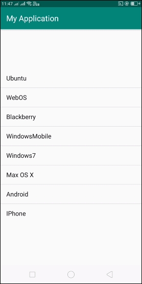 String[] mobileArray = {"Android","IPhone","WindowsMobile","Blackberry", "WebOS","Ubuntu","Windows7","Max OS X"};