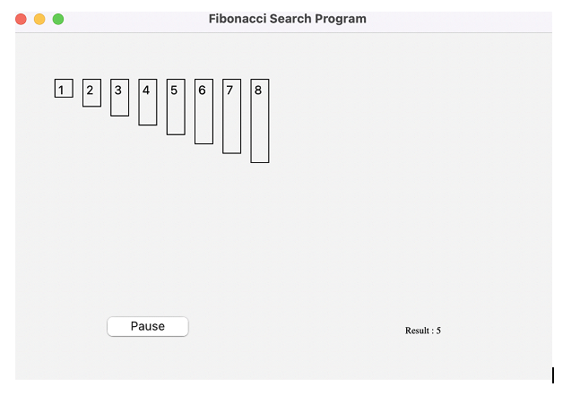 The Fibonacci Search Visualizer we developed using PyQt5 enables us to see how the Fibonacci search algorithm functions. We may input a search term and watch how the algorithm splits the list into three sections and does the search. The visualizer can be helpful for troubleshooting and comprehending the method.