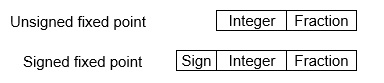 This representation has fixed number of bits for integer part and for fractional part. For example, if given fixed-point representation is IIII.FFFF, then you can store minimum value is 0000.0001 and maximum value is 9999.9999. There are three parts of a fixed-point number representation: the sign field, integer field, and fractional field.
