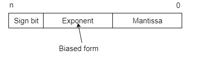 So, actual number is (-1)s(1+m)x2(e-Bias), where s is the sign bit, m is the mantissa, e is the exponent value, and Bias is the bias number. The sign bit is 0 for positive number and 1 for negative number. Exponents are represented by or two’s complement representation.