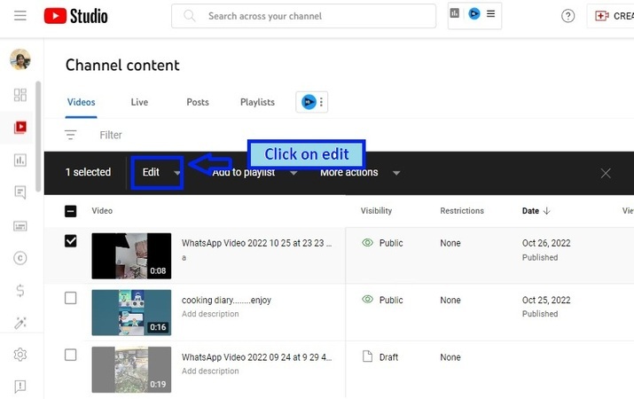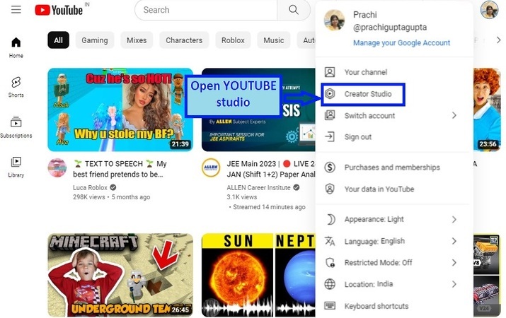 Open YouTube studio.