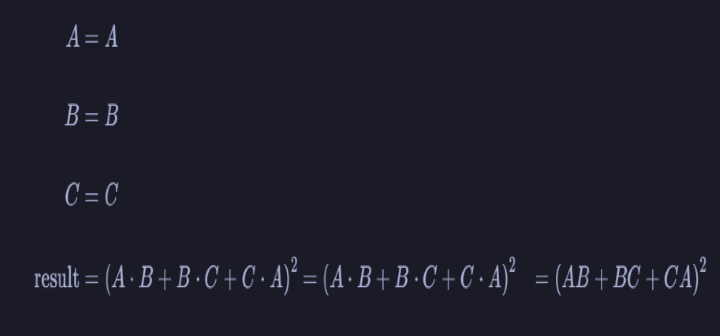 result= (a**2 + b**2 + c**2)/(a**2 + b**2 - c**2)