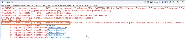 //verify error message with Assertion