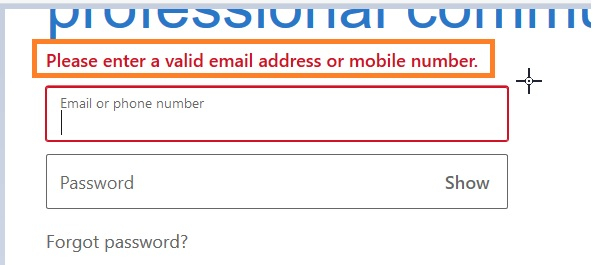 String exp = "Please enter a valid email address or mobile number.";