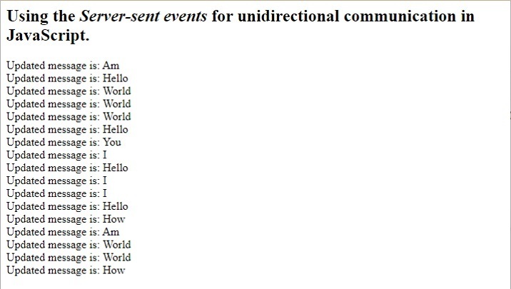 So, in this way, we can get a notification in the client-side JavaScript whenever server-side data gets updated using the server-sent events.