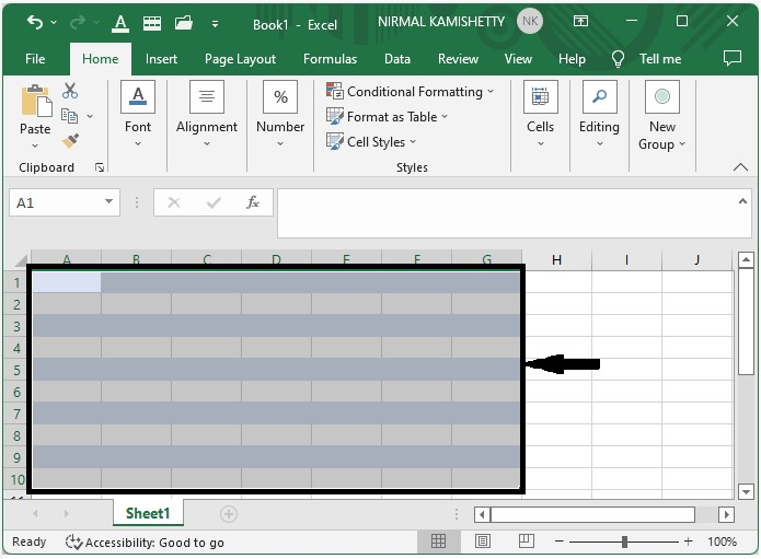 Let us consider an empty or new Excel worksheet to apply odd or even row colours or column colours.