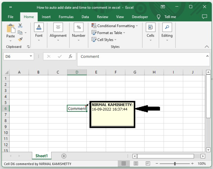 Auto Add Date and Time to Comment in Excel