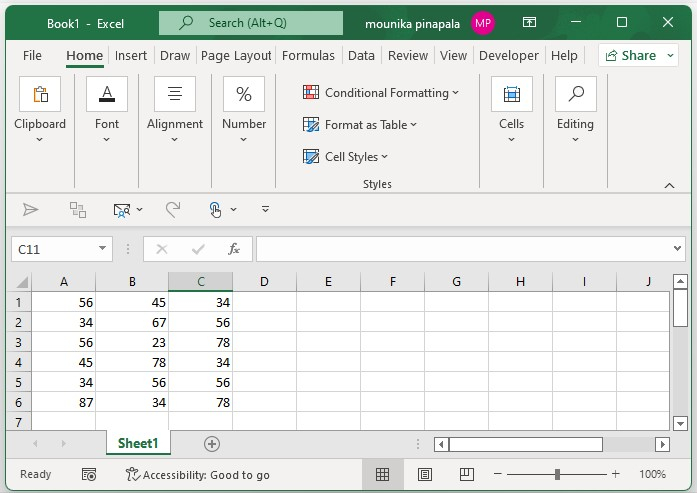 Open a Microsoft excel sheet, and enter the data as shown below you can also enter the data as per your wish. Kindly find the below screenshot for your reference.