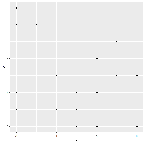 x<−rpois(20,5) y<−rpois(20,5) df<−data.frame(x,y) df