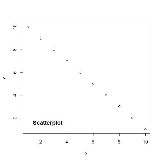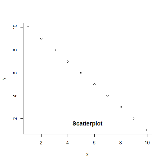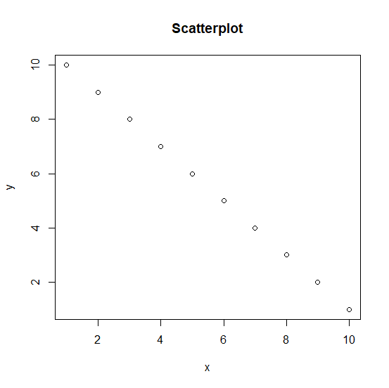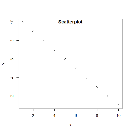 x <-1:10 y <-10:1 plot(x,y,main="Scatterplot")