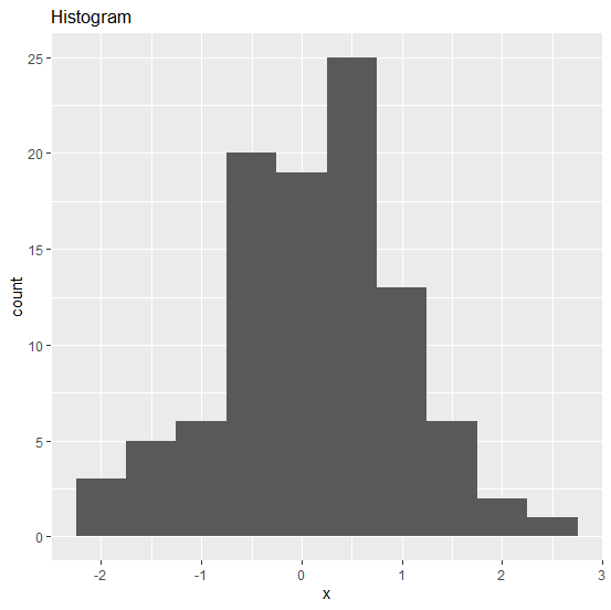 ggplot(df,aes(x))+geom_histogram(binwidth=0.5)+ggtitle("Histogram")