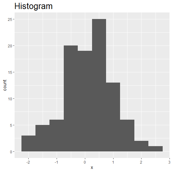 ggplot(df,aes(x))+geom_histogram(binwidth=0.5)+ggtitle("Histogram")+theme(plot.title = element_text(size=20))