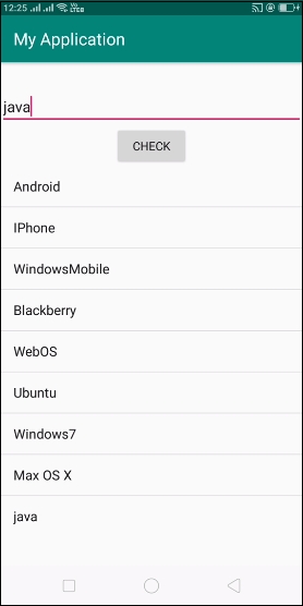 In the above result, we have added element to listview, now enter same value to do data validation as shown below –