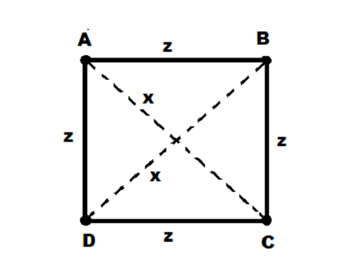 The distance between the points A and B, and the points B and C, and the points C and D, and the points D and A i.e. "z" should be equal.