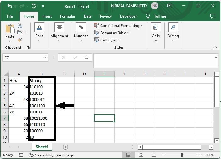 Here, we will first use the formula to get any one of the results, then use the autofill handle to get all the results. Let us look at a simple procedure for converting a hex number to a binary number in Excel using formulas.