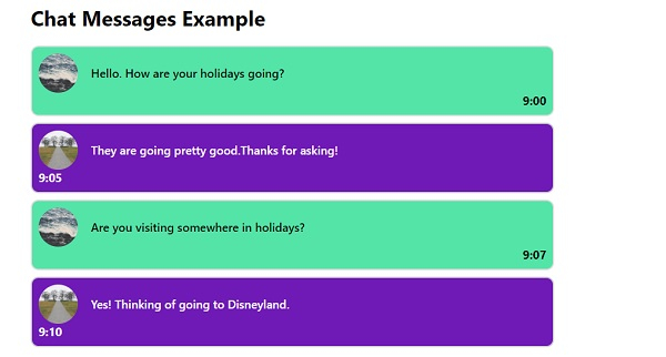 To create a chat message with CSS, the code is as follows −