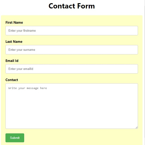 Following is the code to create a contact form using CSS −