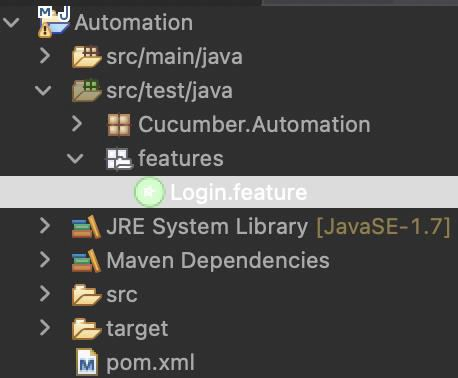 Step6− A project should get created with a Cucumber-type project structure. The Cucumber-related scripts should be written within the src/test/java folder.