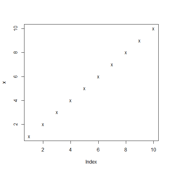 In base R, the plot with different shape of points can be created by using pch argument inside the plot function but if we want to use any sign that is not designed for pch argument by default then we should pass that particular sign. For example, if we want to use cross sign then we can use letter x with pch as pch = "x".