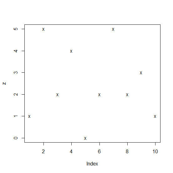 Consider the below vector and create the plot by displaying cross sign using letter x −