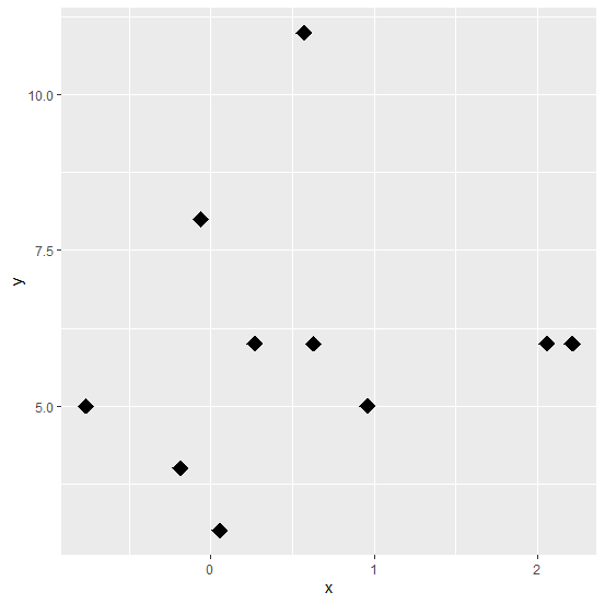 ggplot(df,aes(x,y))+geom_point(pch=18,size=5)