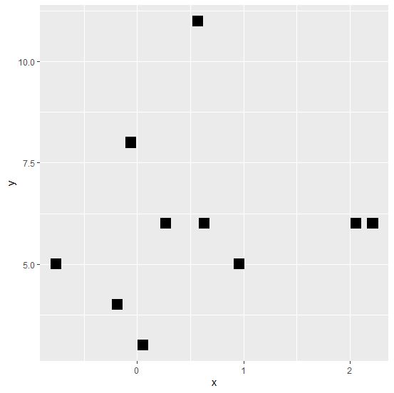 ggplot(df,aes(x,y))+geom_point(pch=15,size=5)