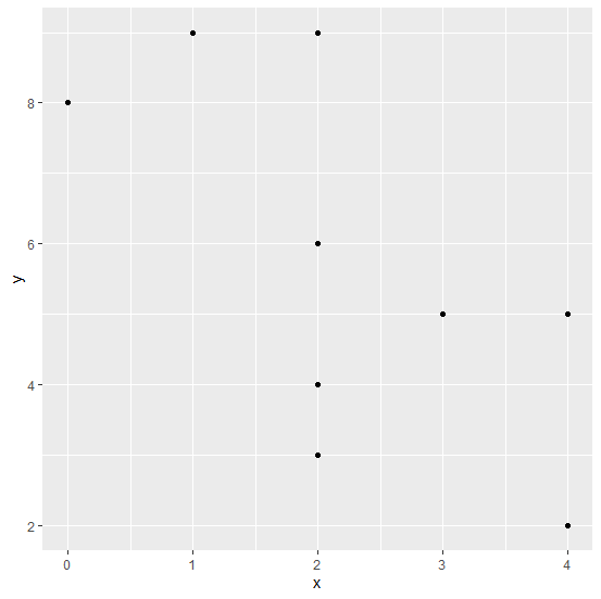 library(ggplot2) ggplot(df,aes(x,y))+geom_point()