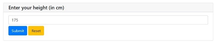 Enter your height in meters and click "Submit" button. On clicking the "Submit" button, it will produce the below screen ?