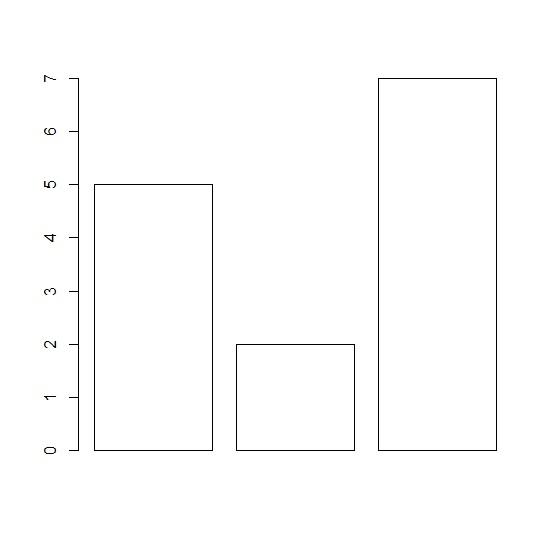 To create a bar plot in base R, we can use the function barplot and pass the vector or column of the data frame for which we want to create the bar plot but the bars created by using barplot by default has grey color. Therefore, if we want to create an empty bar plot then setting the color of bars to NA will make the plot an empty bar plot.