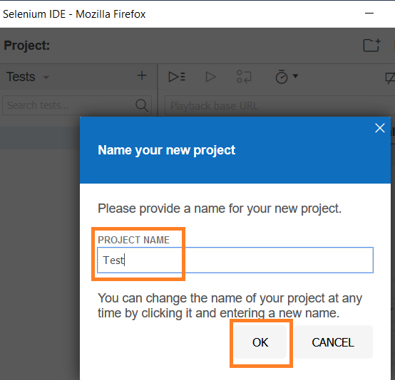 Step1: Launch Selenium IDE. Then click on Create a new project link.