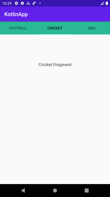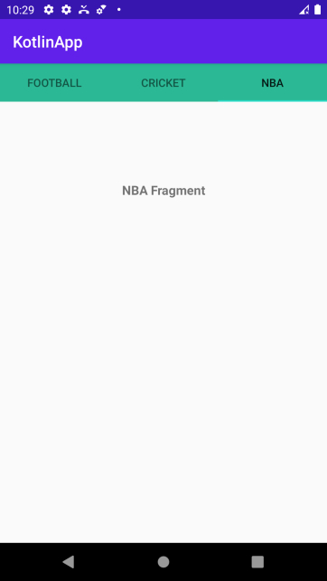 Step 5 − Create 3 Fragment activities (Cricket, Football, NBA - You can have your name) and the following code −